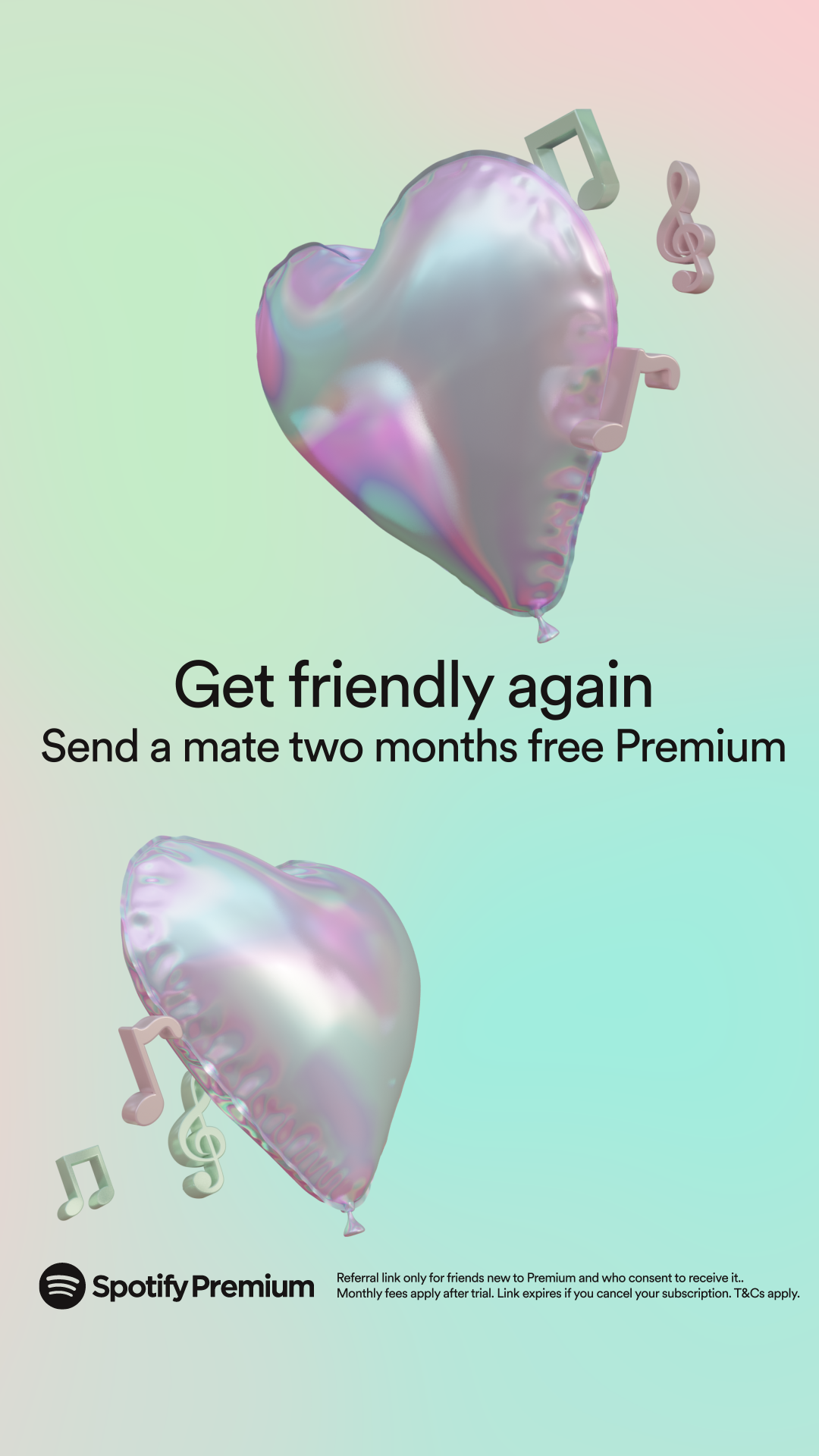 Spotify Premium wanted a campaign to raise awareness of a new referral scheme, enabling you to gift someone 2 months free. Tapped into the easing of lockdown with a theme of gifting someone premium as a way to re-connect. The campaign ran across social channels as well as email and in-app.
